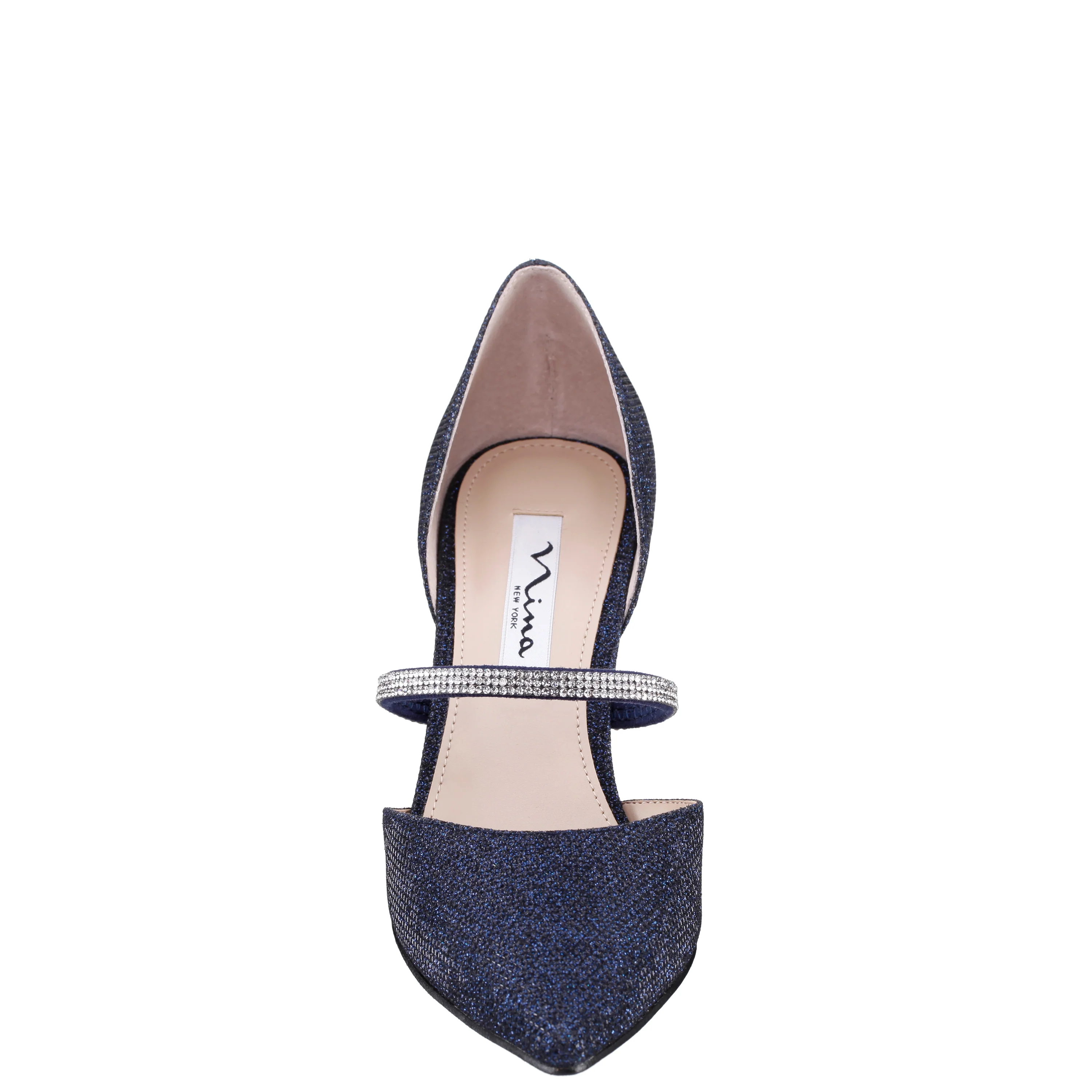 This simply "wow" pointy-toe pump is simply stunning. Brystol by Nina, a d'Orsay two-piece pump, is adorned with a crystal-covered instep strap that compliments any event outfit from trousers to gowns more glamorous. A must-have addition for any shoe wardrobe.