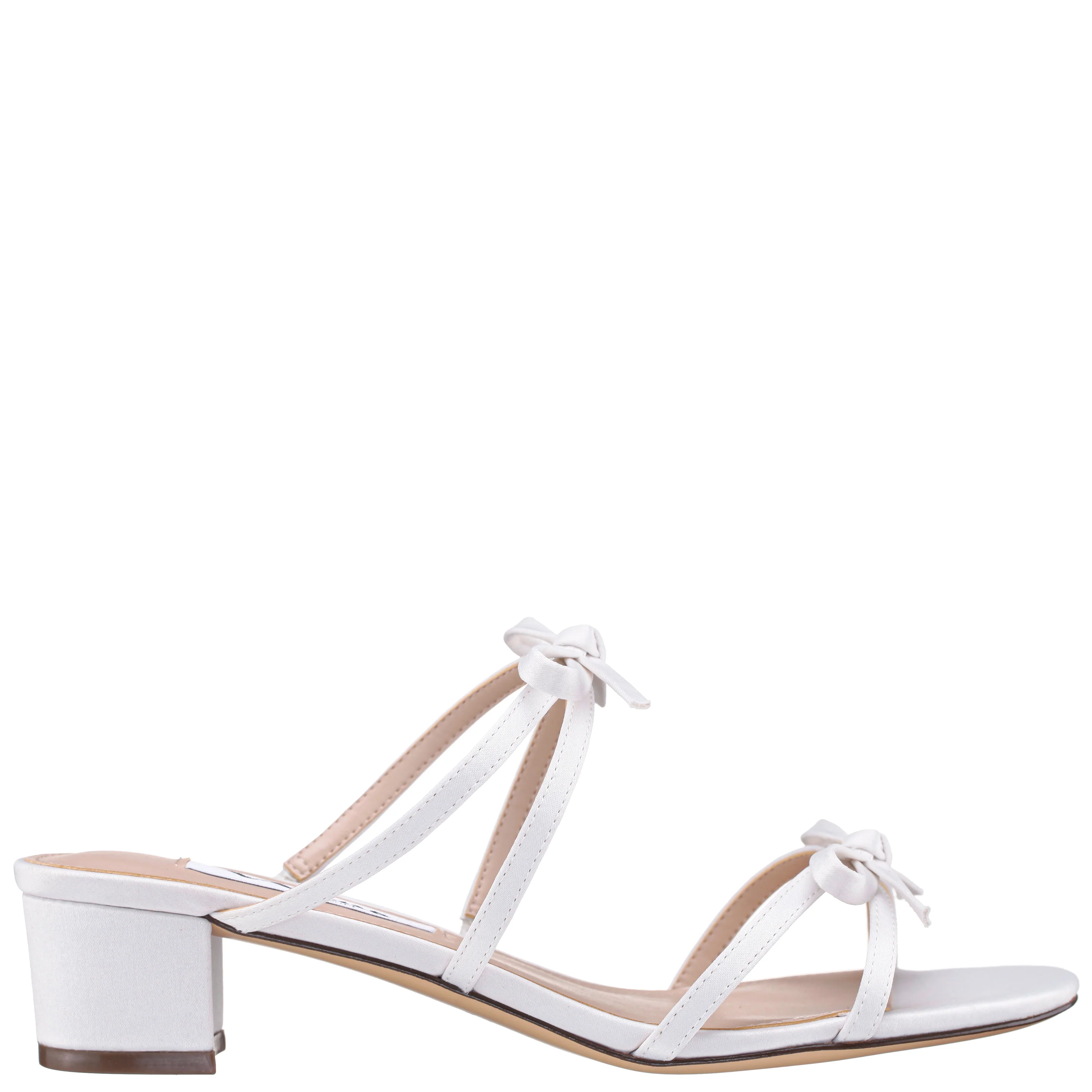 Gaby Sandal Feminine and flirty, the Gaby By Nina Shoes is enchanting in its simplicity. Designed with lustrous satin straps adorned with delicate bows, this slip-on style exudes effortless elegance. Perfect for brides or special occasions.