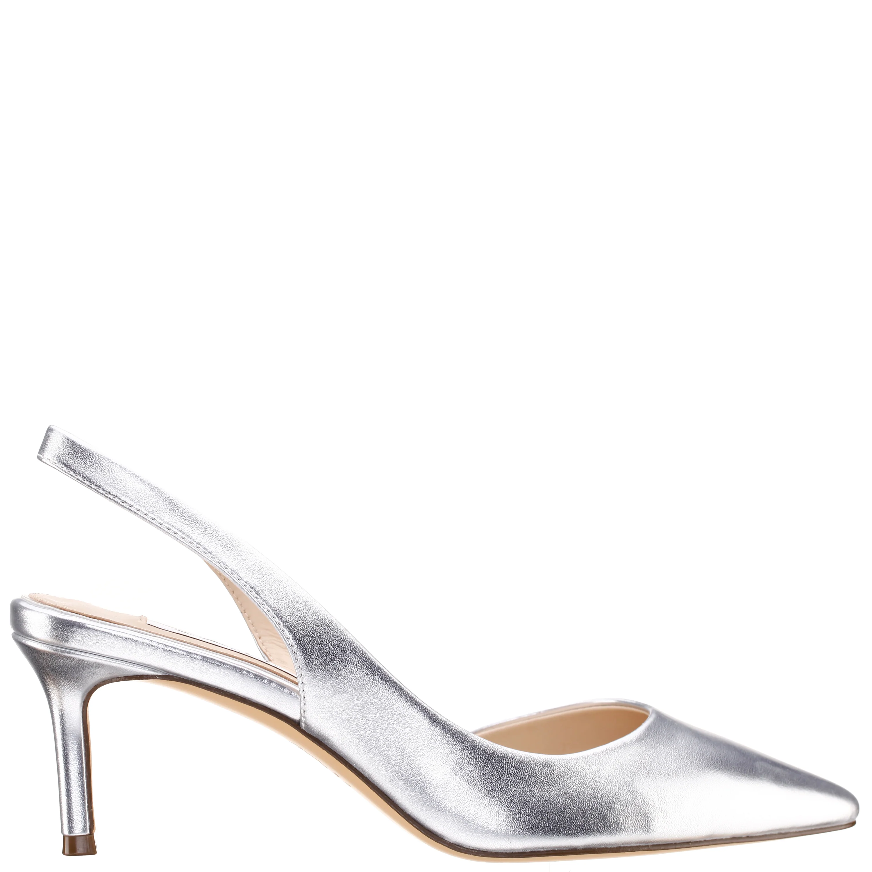 Simple and chic, NINA60S is the statement pump of the season. With its pointed toe and mid-heel, this slingback is a welcome basic to any shoe wardrobe. Featured in shiny metallics and elegant satin, it's the perfect finishing touch to a little black dress or a pair of jeans.